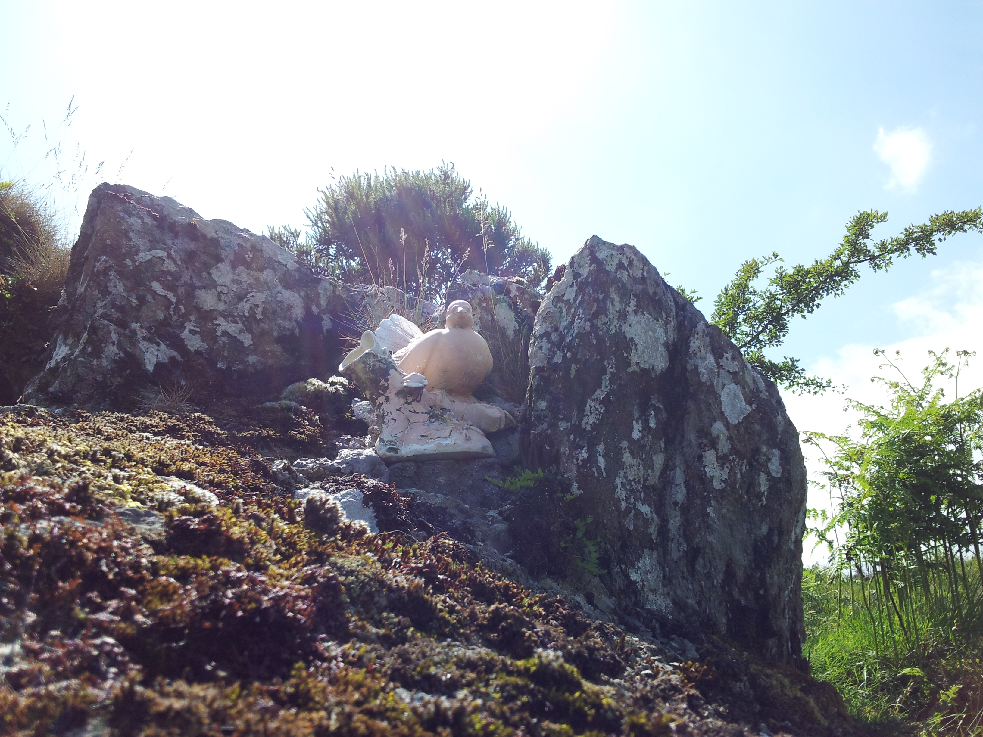 Another unusual new feature was a small statue of a pigeon or dove is found on top of the rock.