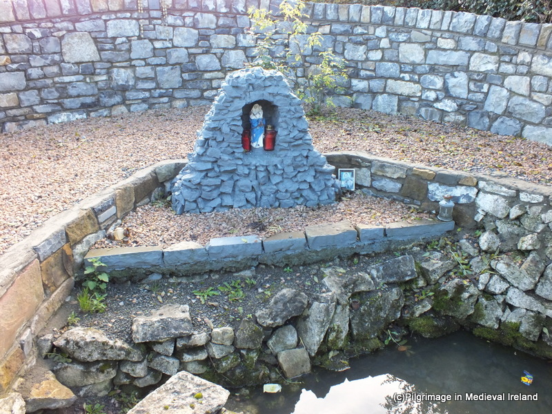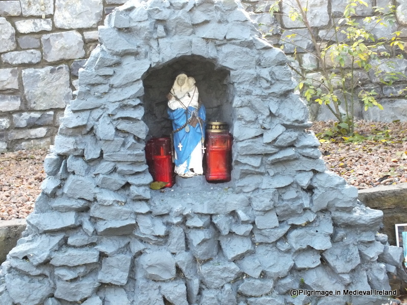 A small grotto with a statue of the Blessed Virgin and Child is located beside the well. Votive offerings in the form of immaculate medals, rosary beads and brown scapula are found on top of the grotto and draped around the statue. According to the Limerick Diocesan web site, the travelling community maintained the well. The area surrounding the well was landscaped last year but luckily there has been little change to the well structure.