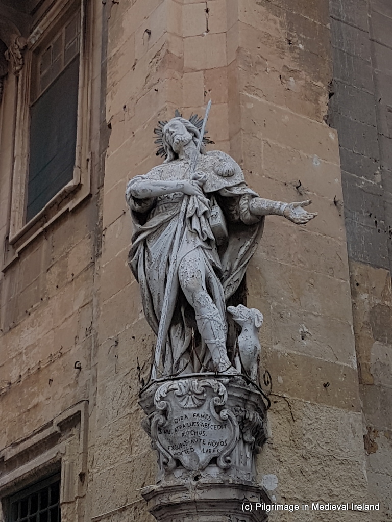 There’s an error in the comment: the figure shown is not Christ but Saint Rochus, who nursed the plague victims, showing the wound on his bare leg, and accompanied by his faithful dog carrying