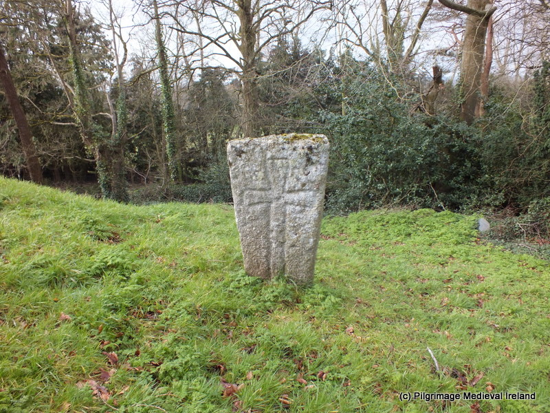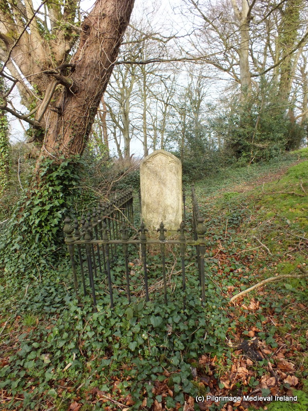 The stone font was removed here from near Aglish, in Muskerry; it has an octagonal base, shaft and font, with plain panels and it is possibly late 14th/15th century in date ( Roe 1968, 13).