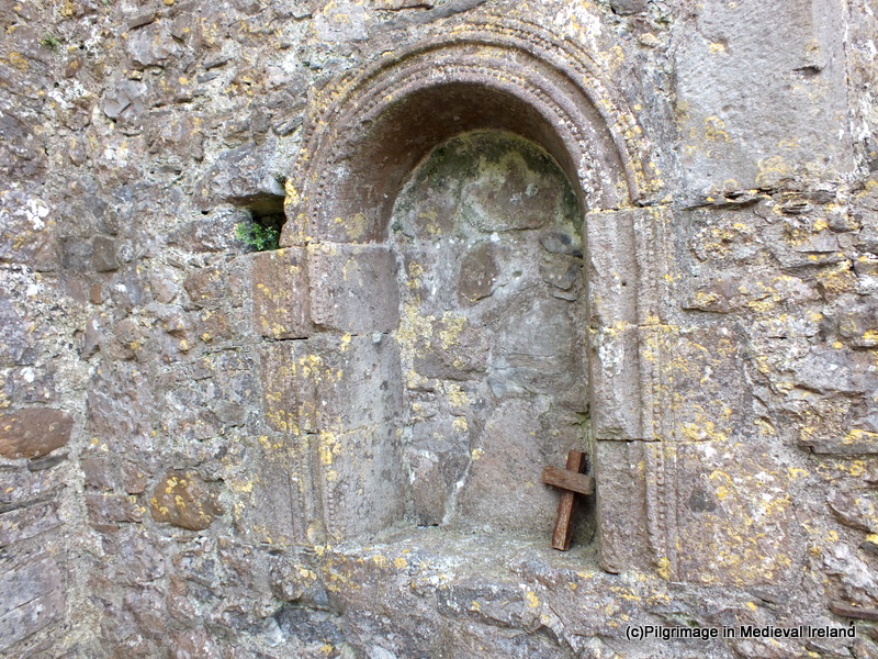Some pilgrims continue a modern practice of scratching a cross into a late 19th century graveslab belonging to the Mac Evilly family. When I visited the site in 2014, a number of tiny stones were left on the edge of the slab. Other accounts suggest that in the mid-twentieth century pilgrims were in the habit of leaving votive offering in the aumbry within the church. This tradition was not noticed on my visit but a number of religious objects were left at the well.