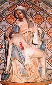 Beside the crucifixion plaque are two heraldic plaques. The use of heraldic emblems first began in the twelfth century when they were used on banners and shields of knights as a way to identifying knights on the battle field. They quickly became symbols of family name and lineage and were by aristocratic families.