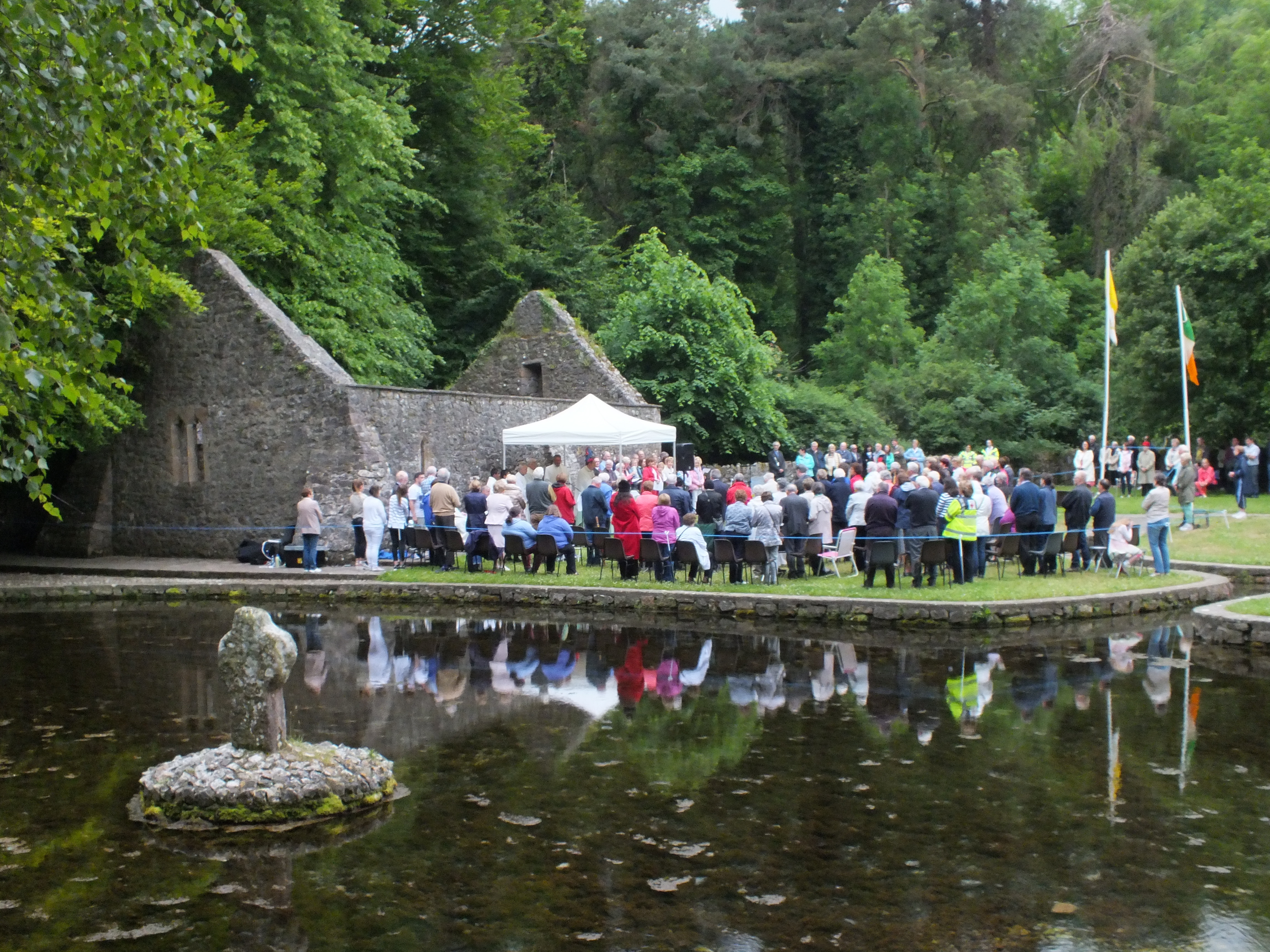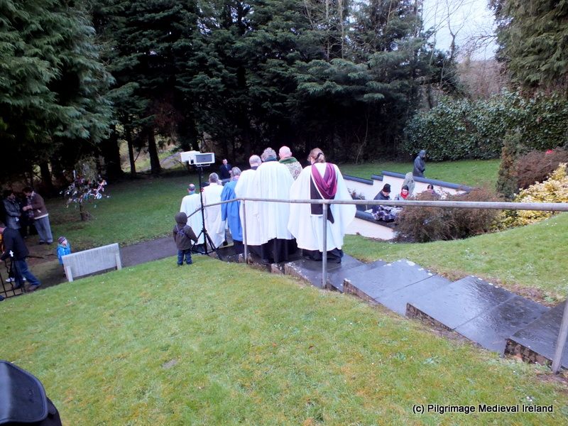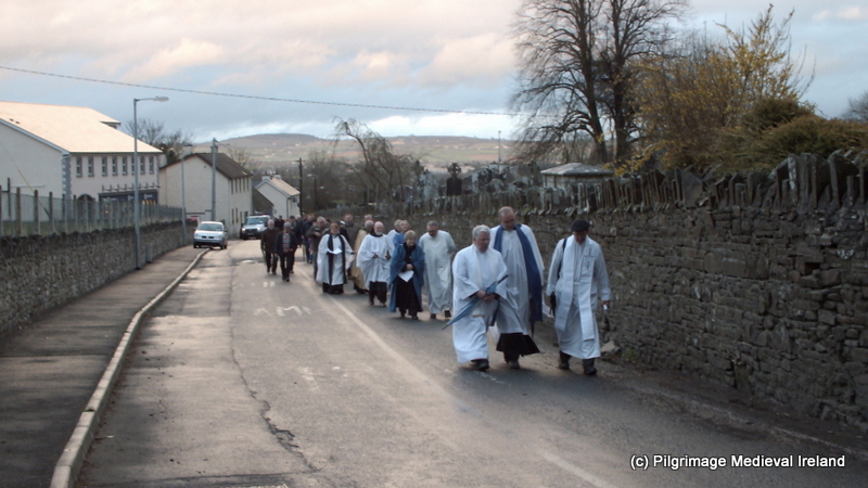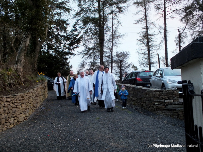 Today as in  medieval times St. Laserian is the focus of a yearly pilgrimage at Old Leighlin  on the 18th of April.  The modern pilgrim celebrations at Old Leighlin  takes place each day  on the saint’s feast day, when an ecumenical  service  is held at  the Church of Ireland Church (medieval cathedral of Old Leighlin) followed by a procession to the nearby holy well dedicated to St Laserian. This year in 2014 the feast day fell on Good Friday and it was held Easter Sunday.