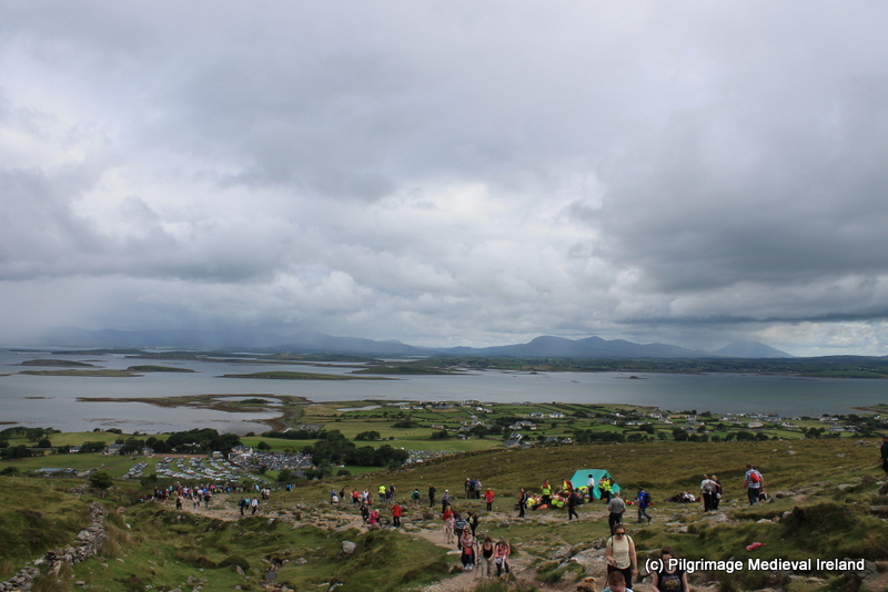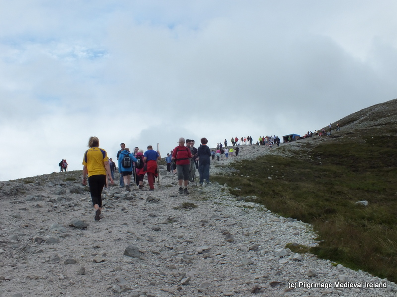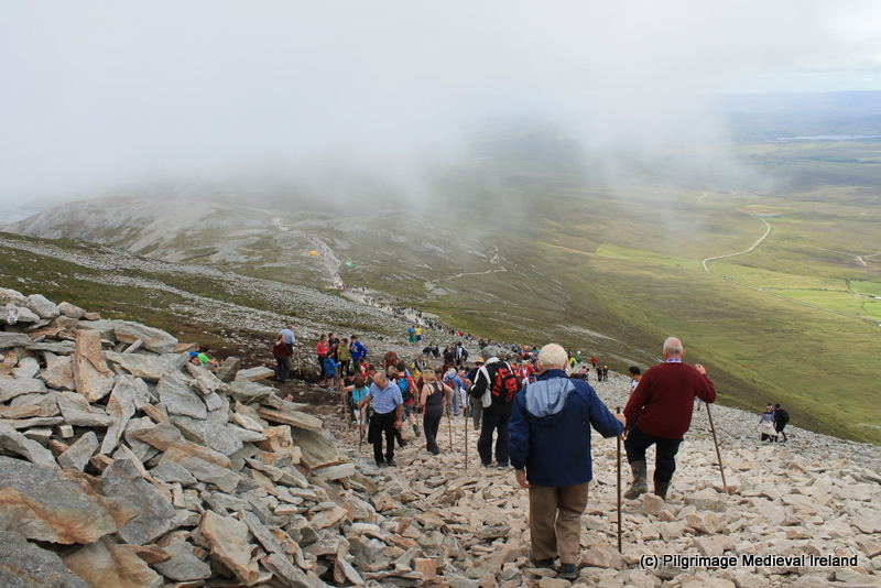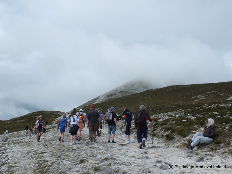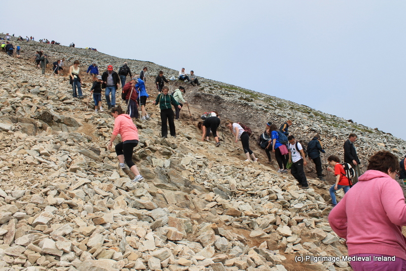 Pilgrims climbing the lower sections of the Cásan Phádraig.