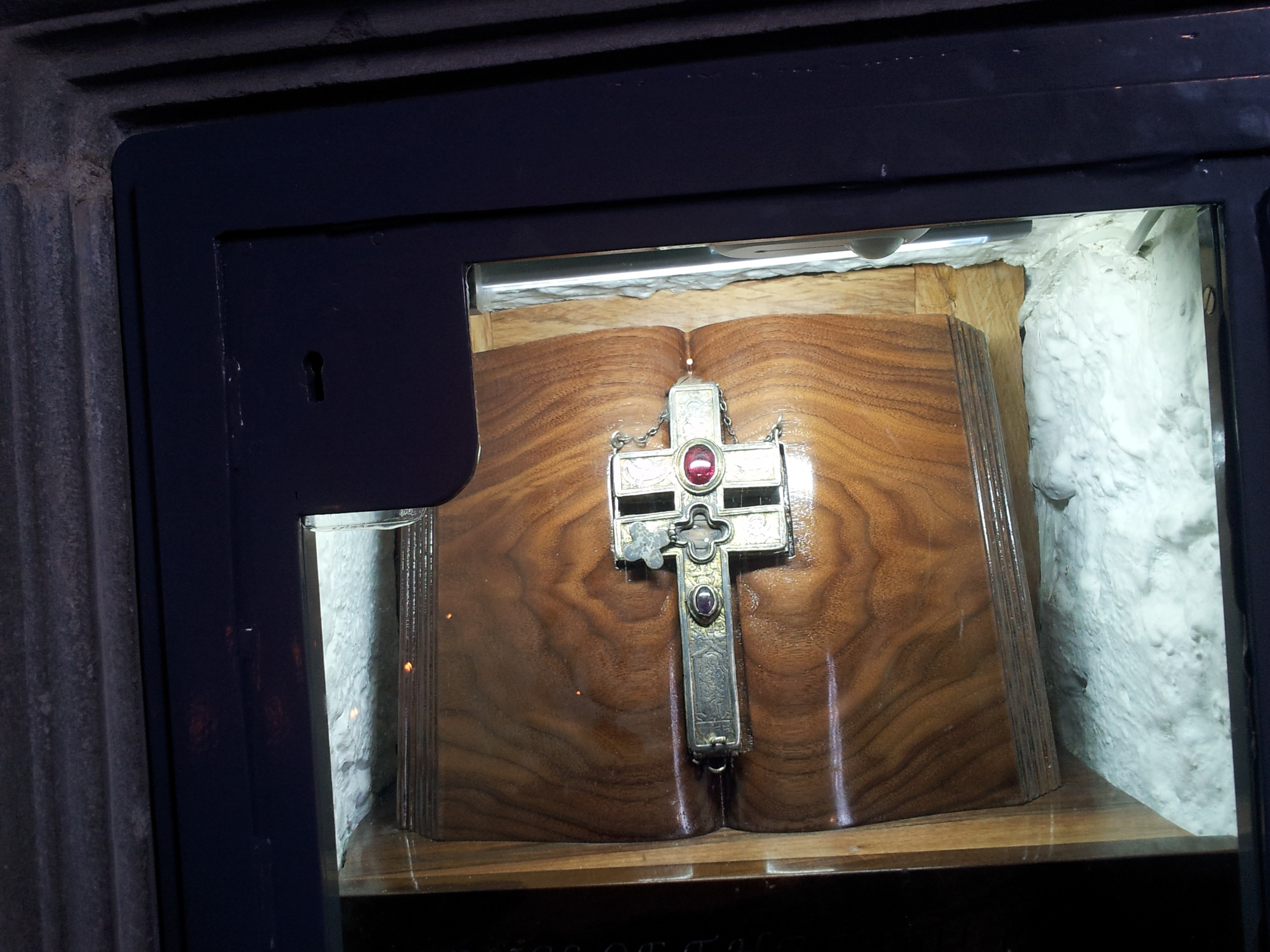 People often leave votive offerings at the statue and on the day I visited there was a large rosary beads draped around the statue’s neck and children’s shoes and a candle at the base.